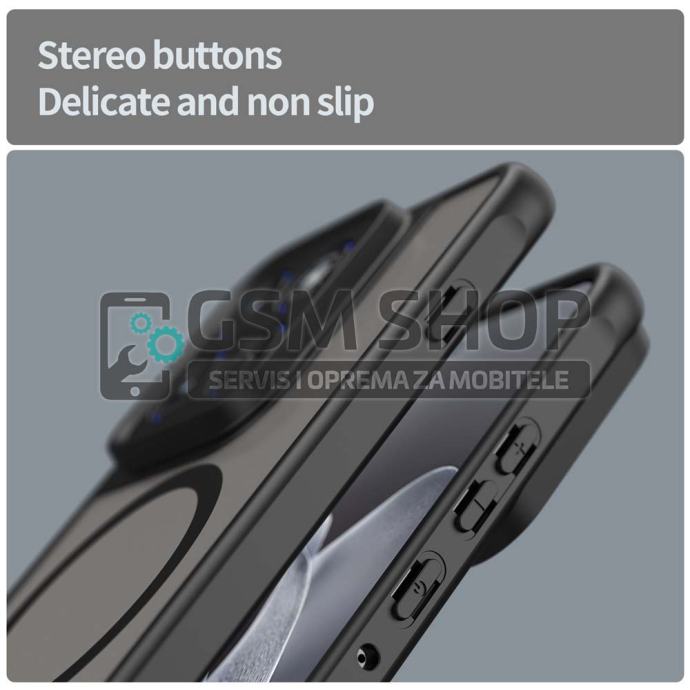 Stražnja strana s integriranim magnetskim prstenom omogućuje jednostavno korištenje s magnetskim nosačima za automobil i ostalim kompatibilnim dodacima. Pojačani rubovi dodatno apsorbiraju udarce pri padu, dok posebno oblikovan dio oko kamere štiti leće od oštećenja i ogrebotina.