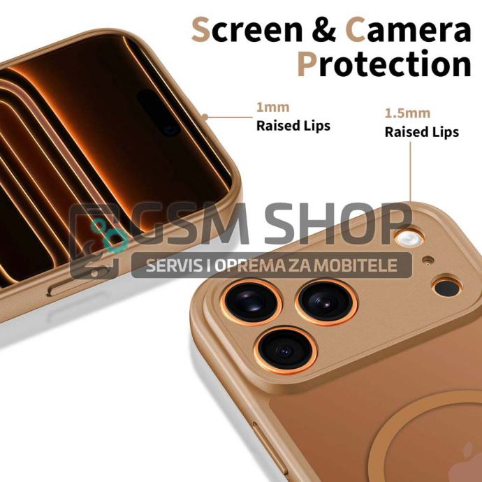 Zaštitite svoj iPhone 17 Pro uz elegantnu MagSafe maskicu izrađenu od kombinacije visokokvalitetnog PC i TPU materijala. Maskica dolazi s mat prozirnim leđima i narančastim obrubom, pružajući moderan izgled i pouzdanu zaštitu. Integrirana magnetska zona omogućuje besprijekornu kompatibilnost s MagSafe punjenjem i dodacima, dok pojačani rubovi nude otpornost na udarce i padove.