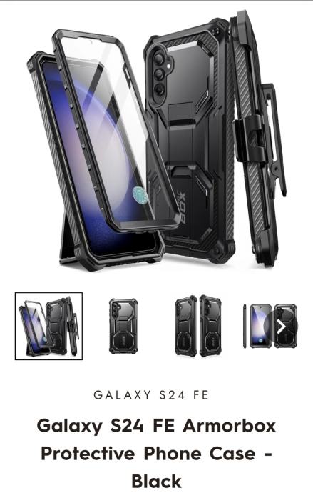 Prodajem novu zaštitnu masku za Samsung Galaxy S24 FE. Maska je crne boje, robusne izrade s pojačanim rubovima za dodatnu zaštitu uređaja. Ima ugrađeni nosač za povremeno korištenje, a zadnja strana ima teksturiran uzorak za bolji hvat. Maska pruža dobru zaštitu od udaraca i ogrebotina, s preciznim izrezima za sve tipke i priključke.