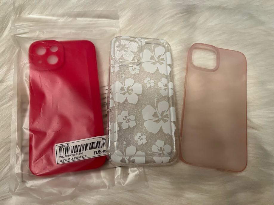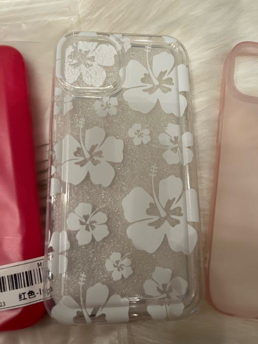 Nove maskice za iPhone 13 u tri različita dizajna: crvena, prozirna s cvjetnim uzorkom i rozo-bež.