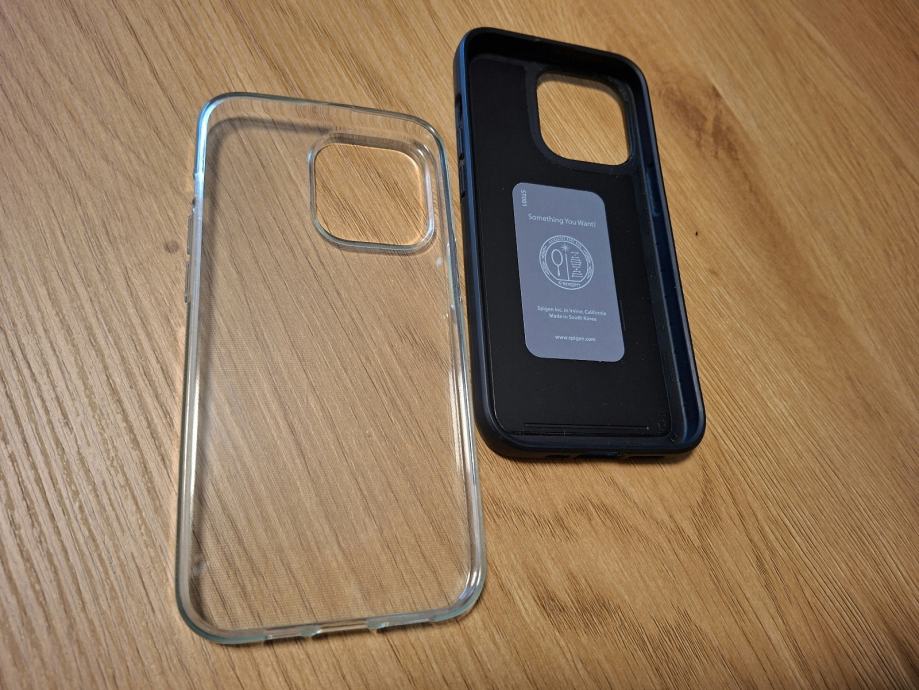 Prodajem dvije maskice za iPhone 13 Pro. Prva je prozirna silikonska maskica koja pruža osnovnu zaštitu i omogućuje da se vidi originalni dizajn telefona. Druga je crna kožna maskica s magnetima za MagSafe punjenje, koja dolazi s plavim rubom. Obje maskice su kompatibilne s iPhone 13 Pro modelom i pružaju zaštitu za svakodnevnu upotrebu.
