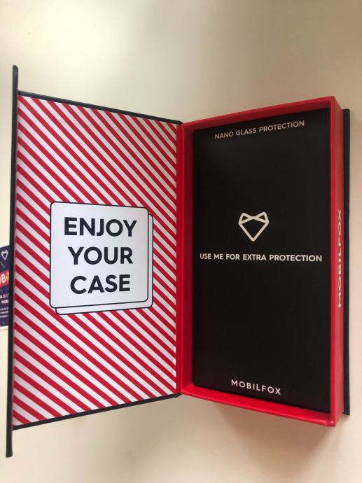 Izuzetno otporna na sve padove, maskica nije korištena i s njom dobivate zaštitno nano staklo za ekran. Potpuno je nova te dolazi u kutijici kako je prikazano na slici iznad.