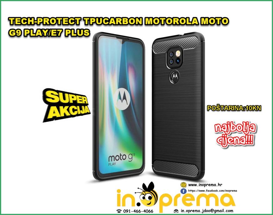 TECH PROTECT TPU CARBON MOTOROLA MOTO G9 PLAY E7 PLUS BLACK MASKA MASKICA FUTROLA TORBICA SILIKONSKA POSTARINA 10 KN 091/466-4066