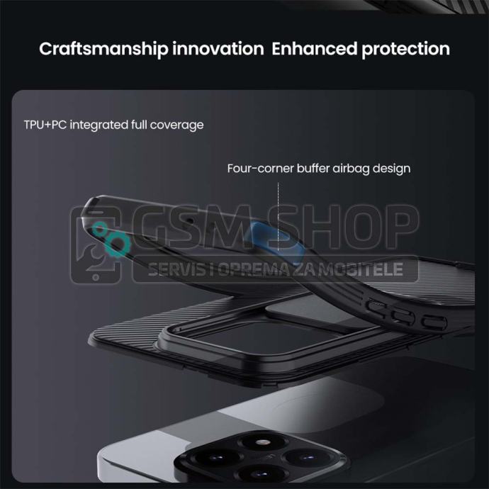 Nillkin CamShield Pro maska za Xiaomi 15T 5G izrađena je od kombinacije čvrstog PC materijala i fleksibilnog TPU okvira, pružajući pouzdanu zaštitu uz elegantan dizajn. Twill tekstura na stražnjoj strani otporna je na habanje, klizanje, prašinu i otiske prstiju, dok integrirani poklopac kamere štiti leće i vašu privatnost.