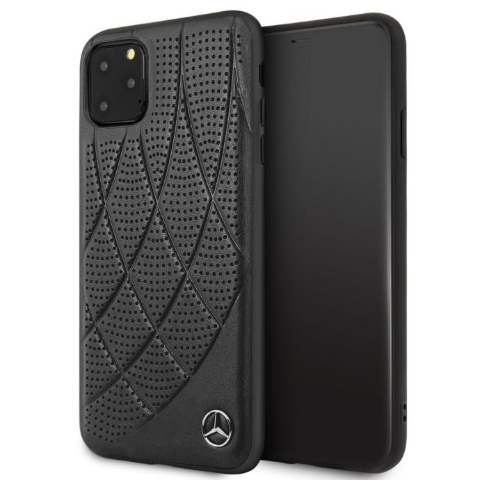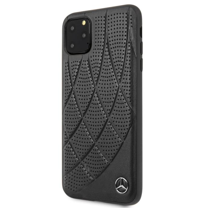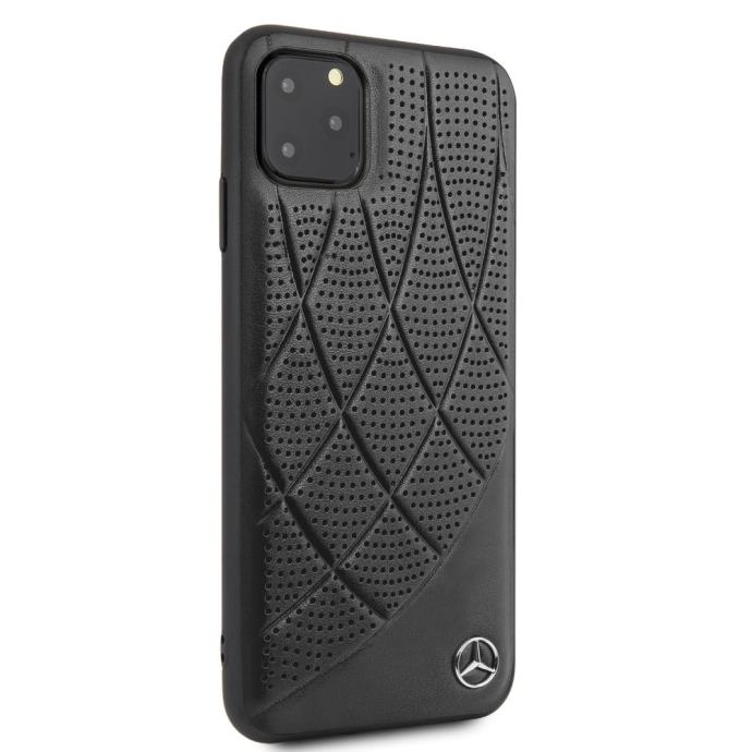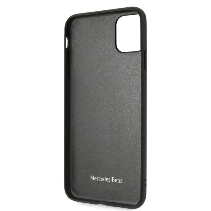 Tvrdi poklopac Mercedes-Benza s urezima za otvore i objektivom kamere štiti vaš pametni telefon od ogrebotina i udaraca. Posebno su zanimljivi: Struktura od kožnih vlakana i metalni logotip Mercedes-Benza.