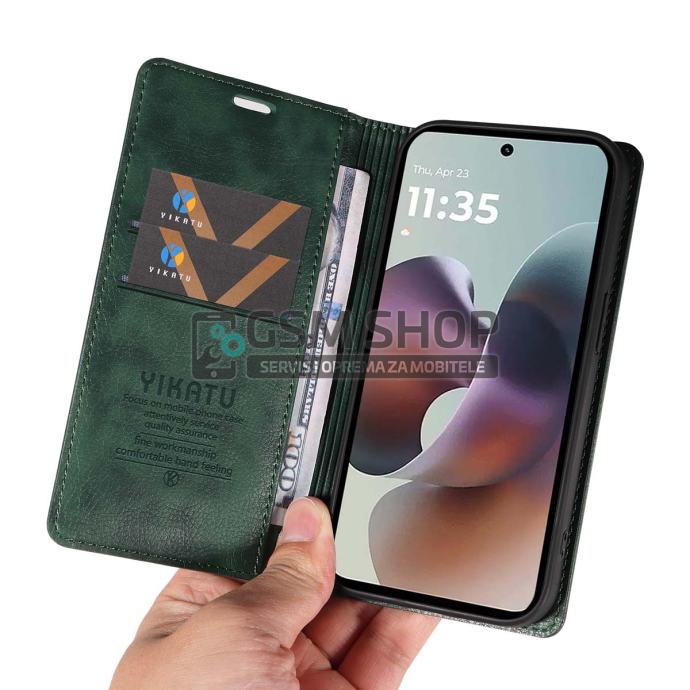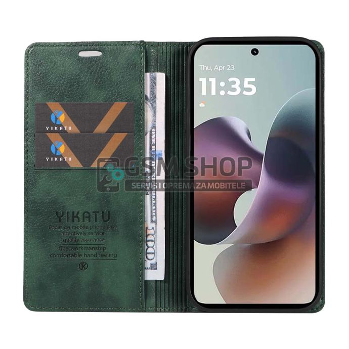 Elegantna i praktična YIKATU preklopna maskica izrađena je od kvalitetne PU kože i mat TPU unutrašnjosti, pružajući uređaju moderni izgled, potpunu zaštitu i dodatnu funkcionalnost. Ova maskica kombinira stil, izdržljivost i praktične značajke koje olakšavaju svakodnevno korištenje Motorola Moto G56 5G uređaja.