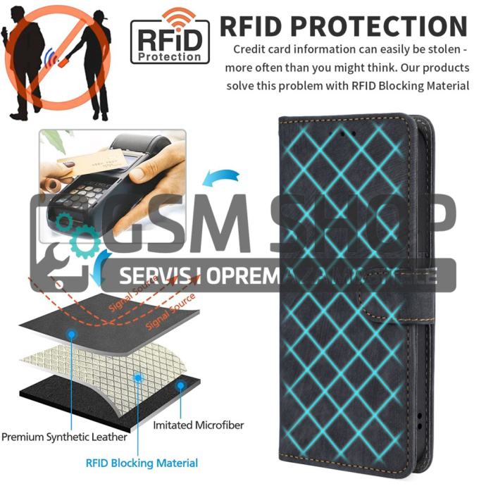 * unutrašnji dio za kartice zaštićen je RFID tehnologijom koji učinkovito blokira signal za krađu podataka s kartice