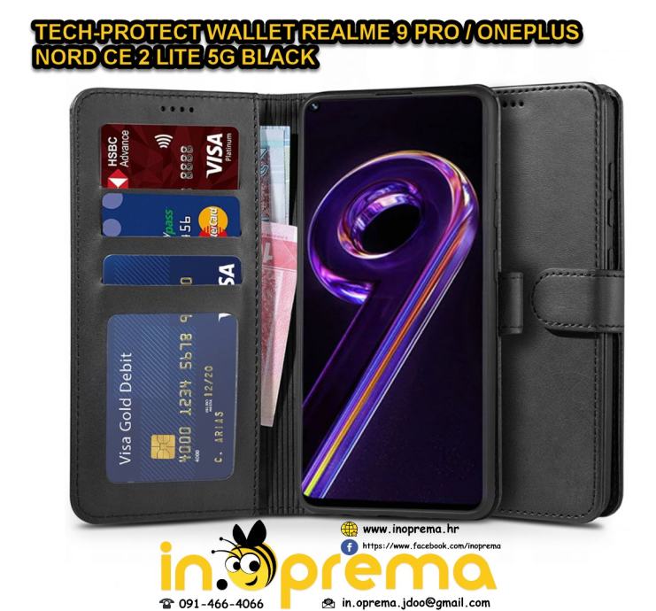 TECH-PROTECT WALLET REALME 9 PRO / ONEPLUS NORD CE 2 LITE 5G BLACK PREKLOPNA KOZNA CRNA ORIGINAL ORGINAL POSTARINA 10 KN 091/466-4066