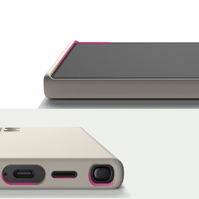 Lagano uzdignuti oblik kućišta oko kamere i zaslona štiti ga od ogrebotina podizanjem telefona tik iznad ravne površine. Ima poklopce za gumbe i izreze za otvore.