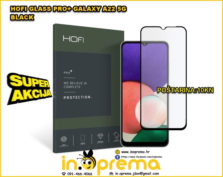 SAMSUNG GALAXY A22 5G A 22 5G KALJENO STAKLO HOFI GLASS PRO+ GALAXY A22 5G BLACK : 60 KN