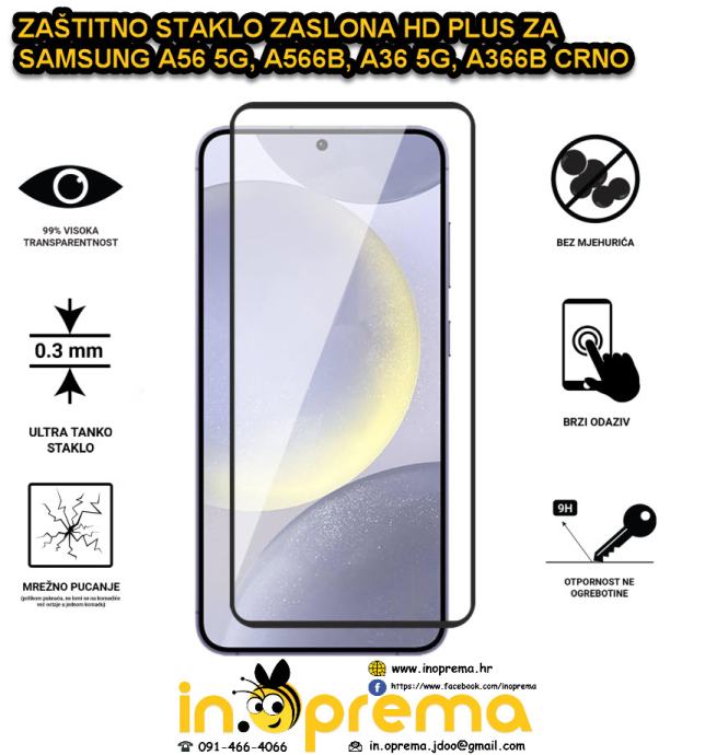 ZAŠTITNO STAKLO ZASLONA HD PLUS ZA SAMSUNG A56 5G, A566B, A36 5G, A366B CRNO