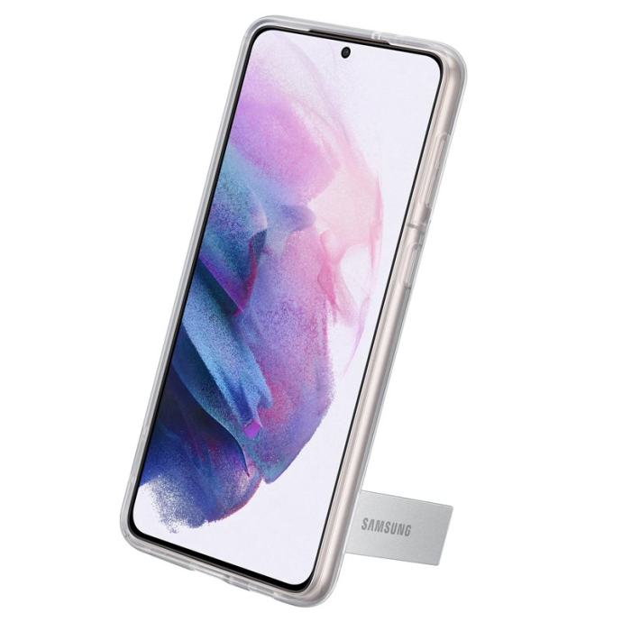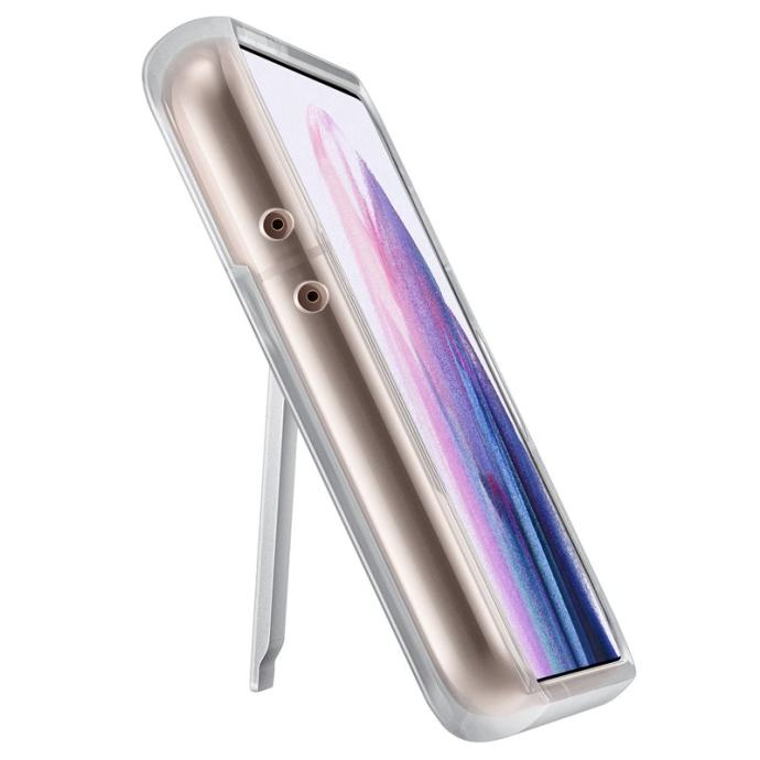 Originalna prozirna maskica napravljena je tako da odgovara vašem telefonu. Samsung EF-JG991CT Clear Standing Cover S21+ EF-JG996CTEGWW sigurno drži vaš telefon i štiti od prljavštine, oštećenja i ogrebotina. Zahvaljujući praktičnim izrezima na konektorima i kameri, ne ograničava upotrebu telefona, a zbog prozirnog dizajna ističe se dizajn Samsunga.
