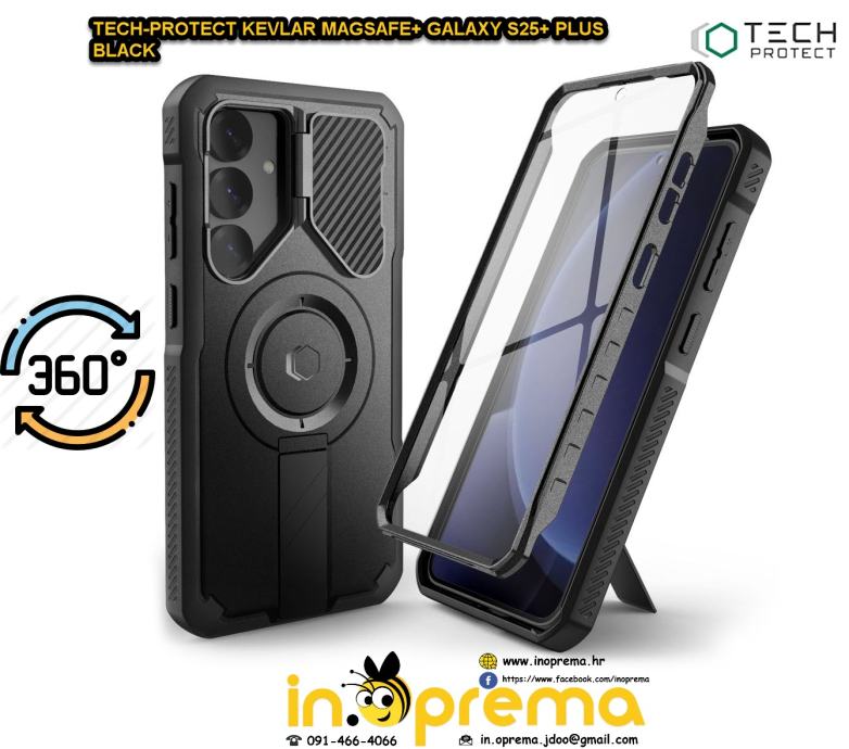 TECH-PROTECT KEVLAR CAM+ MAGSAFE GALAXY S25+ PLUS S25 + BLACK OBOSTRANA PROZIRNA 360 MASKICA FULL 091/466-4066