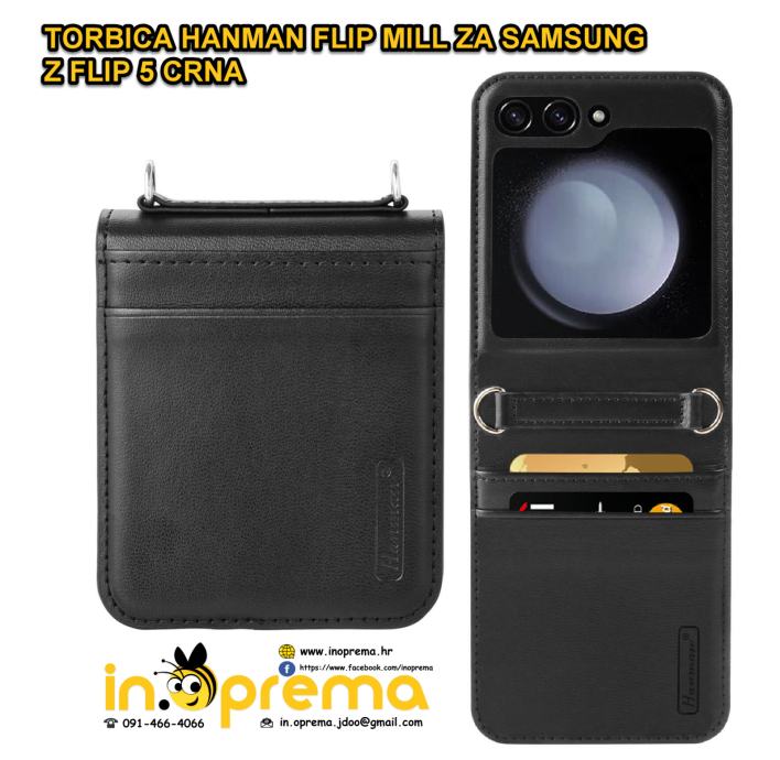 CIJENA : PREKLOPNA MASKICA TORBICA HANMAN FLIP MILL ZA SAMSUNG Z FLIP 5 CRNA - 15 EUR