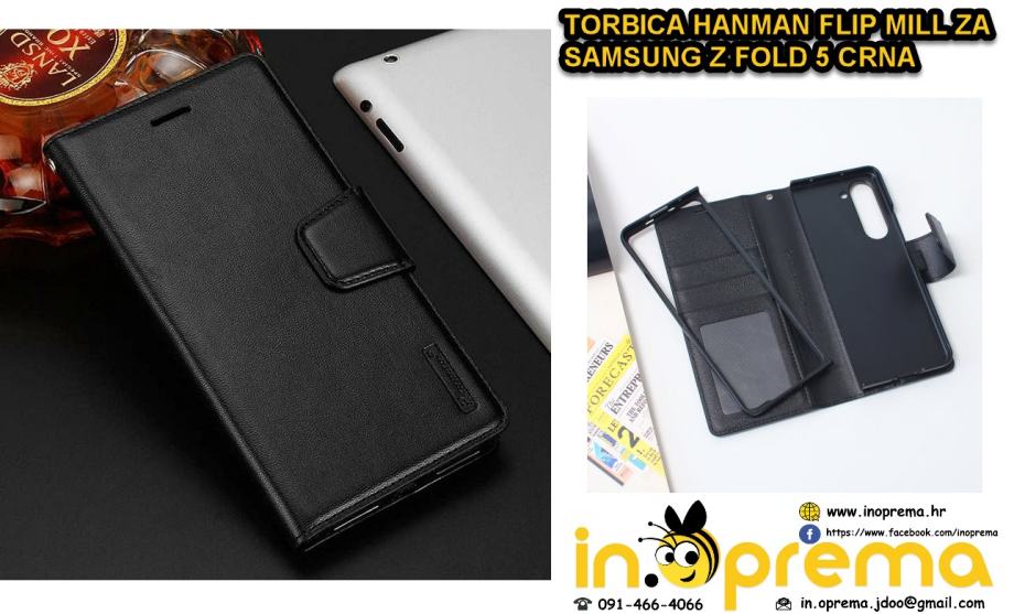 CIJENA : PREKLOPNA MASKICA Z FOLD 5 TORBICA HANMAN FLIP MILL ZA SAMSUNG Z FOLD 5 F936B CRNA - 15 EUR