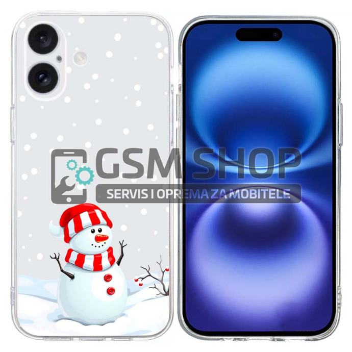 Silikonska prozirna maskica sa uzorkom Božićnog snjegovića iPhone 16