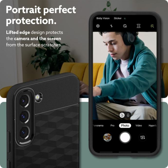 Dvodijelni odbojnik iz serije Parallax tvrtke Caselogy by Spigen izrađen je od mekog TPU-a i okvira računala koji štiti kutove i bočne strane.