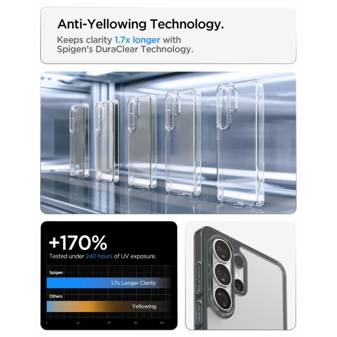 Kućište koje kombinira minimalistički dizajn i zaštitu na najvišoj razini. Izrađen od izdržljivog, fleksibilnog TPU materijala koji sigurno okružuje cijeli uređaj na takav način da pruža izvrsno amortiziranje. Uz to je nadopunjen snažnom polikarbonatnom pločom koja štiti od ogrebotina i stvrdnjava strukturu. Proizvod je idealno prikladan, potpuno funkcionalan, ne ograničava pristup vanjskim priključcima i učinkovito štiti telefon tijekom pada. Ultra Hybrid je savršeno zaštitno rješenje uz održavanje minimalne težine i debljine.