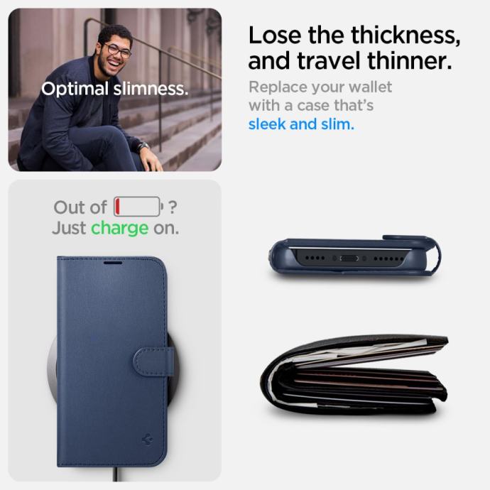 Neobična torbica klasičnog i elegantnog dizajna Spigen Wallet S. Torbica je izrađena od PU kože, što čini torbicu izdržljivom i ugodnom za korištenje. Unutrašnjost ima integrirane džepove za kreditne kartice i gotovinu, koji su također izrađeni od PU kože.