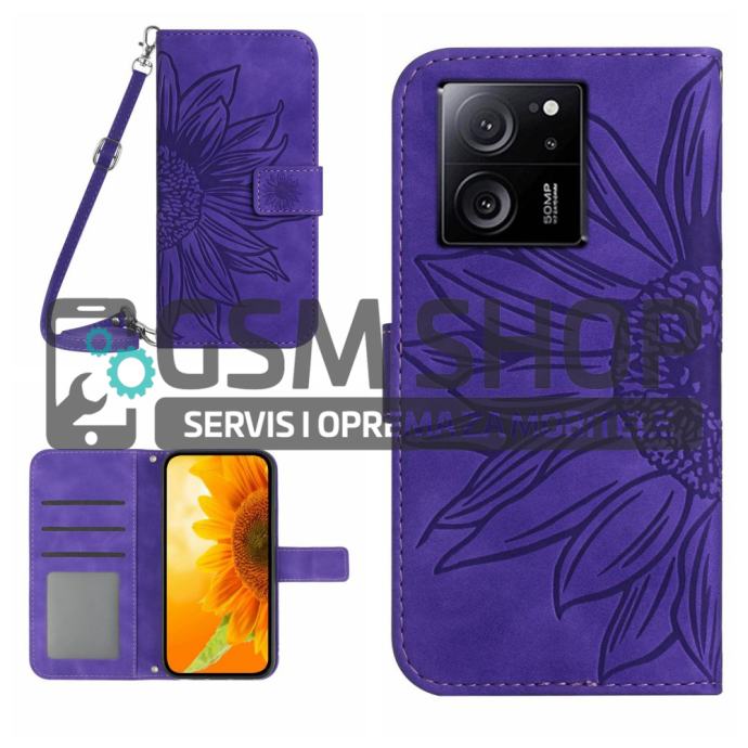 Suncokret dizajn preklopna torbica futrola Xiaomi 13T/13T Pro lila