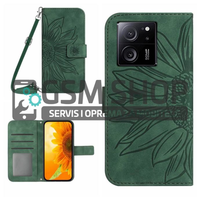 Suncokret dizajn preklopna torbica futrola Xiaomi 13T/13T Pro zelena