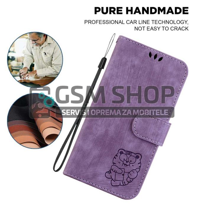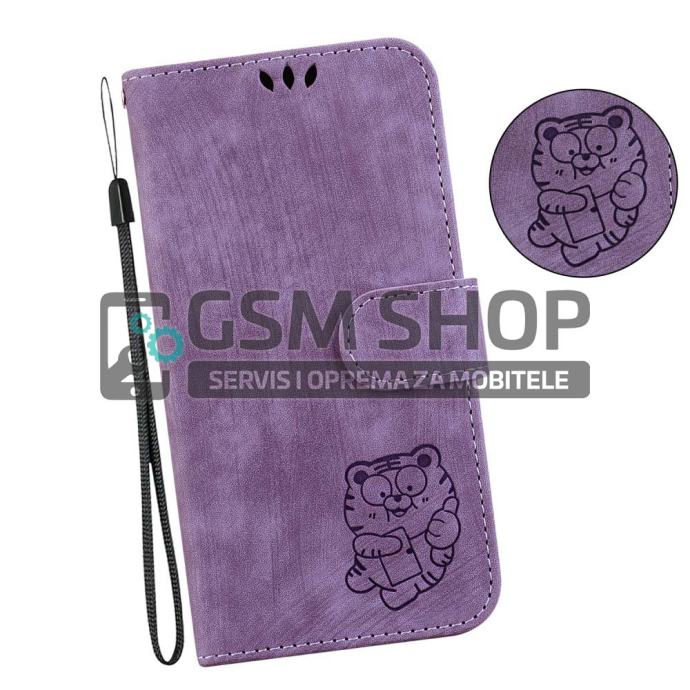 Tigrić dizajn preklopna torbica za Samsung Galaxy A36 5G / A56 5G lila