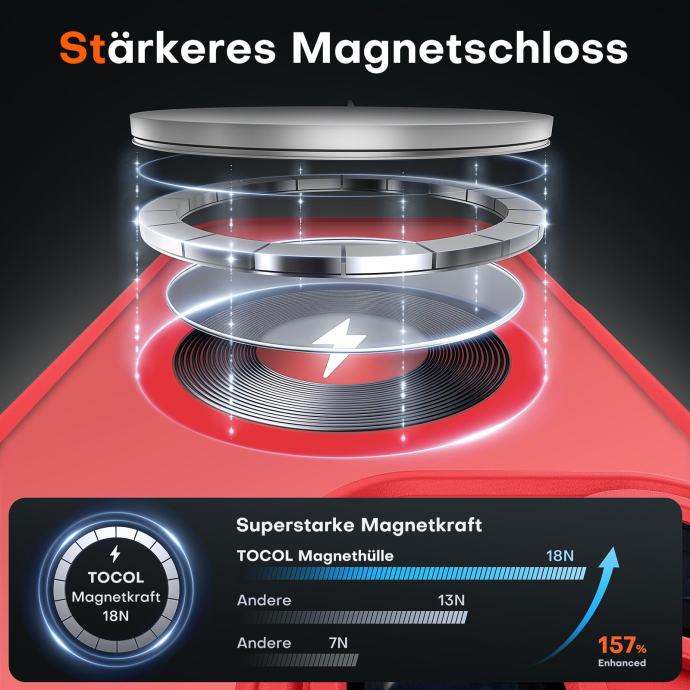Ova magnetska futrola za iPhone 15 Pro ima ugrađene super N52 magnete, magnetska privlačnost doseže 18N, savršeno je kompatibilna s bežičnim punjenjem i raznim magnetskim dodacima.