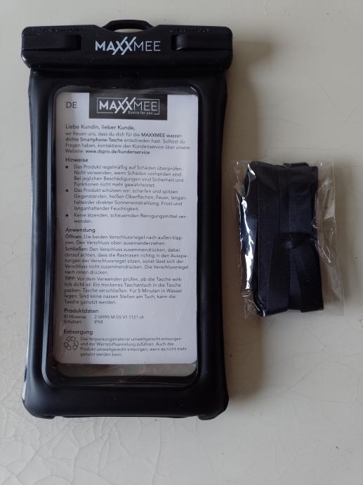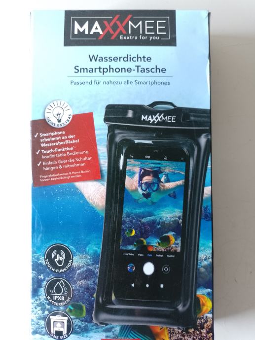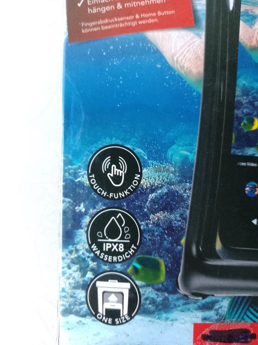 Torbica plastična vodonepropusna za mobitel , ako mobitel padne u vodu , i ne može potonuti , a može se koristiti i pod vodom za snimanje . Ima i remen za objesiti oko vrata . Pogodno je za ribiče , izletnike , planinare , ljude koji borave u prirodi .Njemački je proizvod