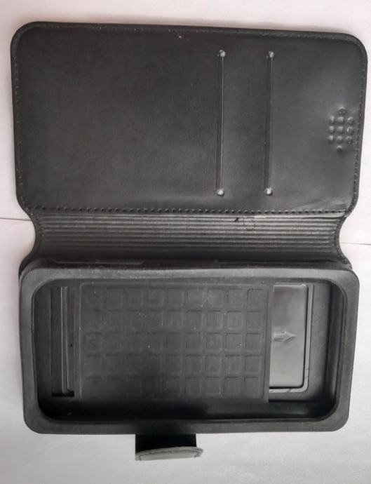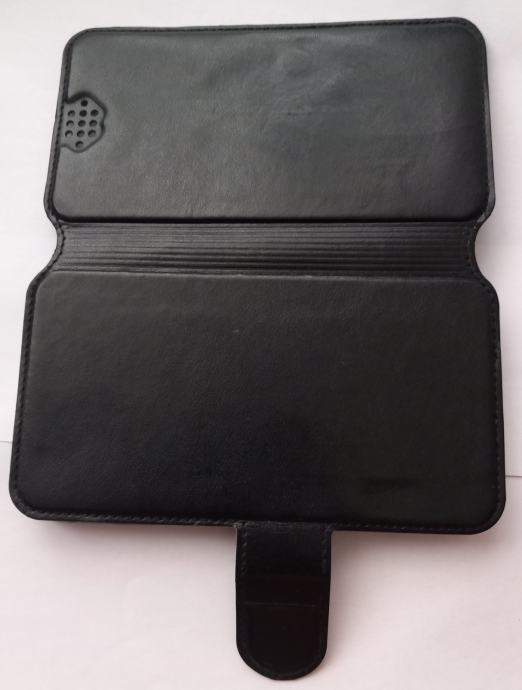 Prodaje se zaštitna maskica (futrola), nova, crna, preklopna, 7,5 x 14,5 cm, s dva utora na lijevoj strani za bilješke i posjetnice.