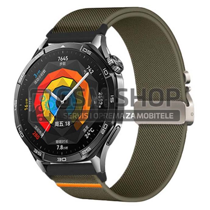 22mm elastični najlonski remen s kopčom za Huawei GT5 Pro, GT4 zeleni