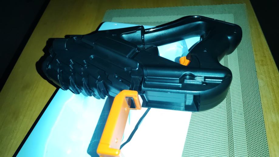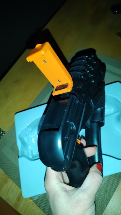 AR konzola (Augmented Reality) je zabavan gadget koji radi sa vašim pametnim telefonom i služi za igranje mobilnih igara. Preuzmite AR GUN aplikaciju (app store, google play) , spojite AR konzolu putem Bluetootha s pametnim telefonom i akcija može početi. Najzabavnije je igrati pucačine iz prvog lica, jer na taj način možete iskoristiti 360° rotacije i najveću mobilnost tijekom igranja. Ovaj popularni model ima dodatne komande za brzu promjenu municije, zoom te mali upravljač (joystick) sa bočne strane koji se koristi za kretanje u prostoru. AR GUN aplikacija podržava i augmentiranu stvarnost pa možete pucati po neprijateljima dok se u pozadini prikazuje vaša trenutna okolina. Ako vaši klinci vole mobilne igre, ovaj proizvod će ih oduševiti. Uređaj je nov samo odpakiran za slikanje.