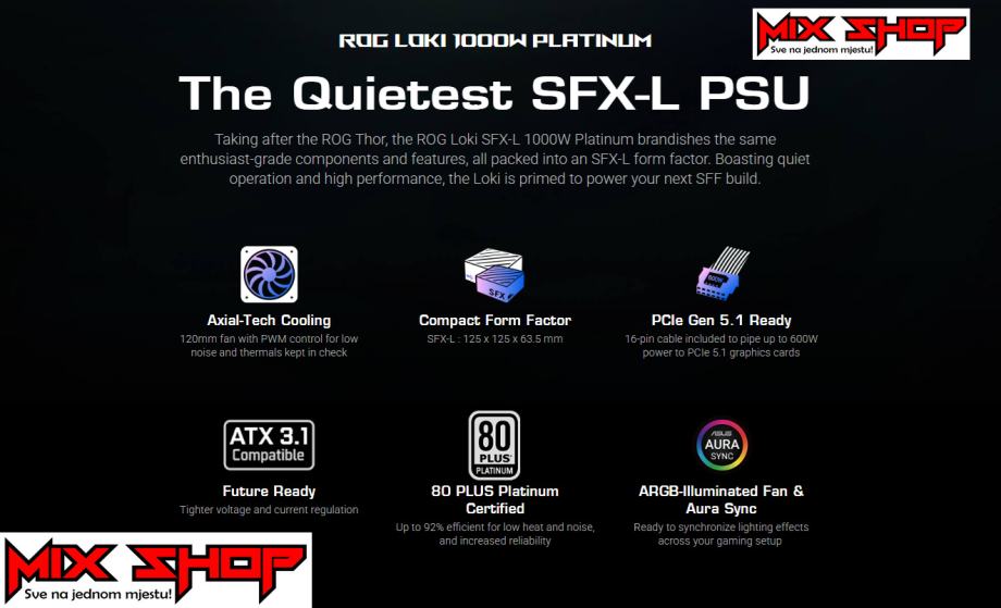 #asus rog napojna jedinica asusrog napajanje za kompijuter komp gaming gejmerska napojne jedinice pro loki plainum gold profesional rgb proffesional atx 3.1 3,1 gen 5.1 argb 80 + plus