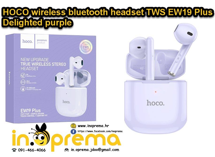 HOCO wireless bluetooth headset TWS EW19 Plus Delighted purple 091/466-4066 ZA DETALJNIJE SLIKE VIBER,WHATSAPP,POZIV,SMS,MAIL,SKYPE