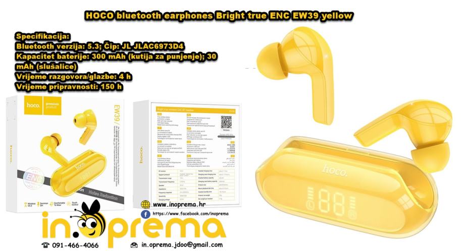 HOCO bluetooth earphones Bright true ENC EW39 yellow 091/466-4066 ZA DETALJNIJE SLIKE VIBER,WHATSAPP,POZIV,SMS,MAIL,SKYPE