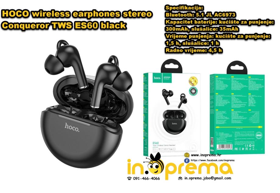 HOCO wireless earphones stereo Conqueror TWS ES60 black 091/466-4066 ZA DETALJNIJE SLIKE VIBER,WHATSAPP,POZIV,SMS,MAIL,SKYPE