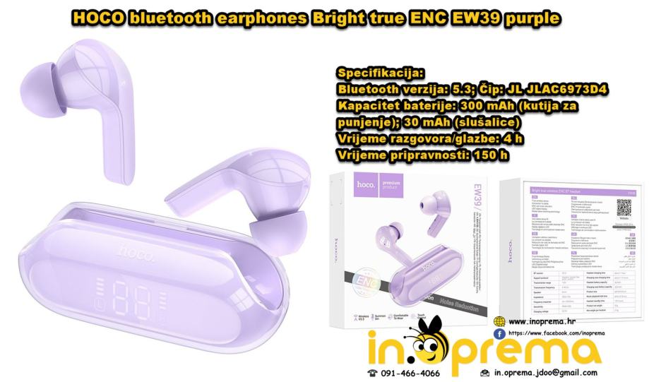 Ostanite uz svoju omiljenu glazbu uz TWS EW39 slušalice tvrtke Hoco. ENC sustav osigurava kristalno jasnu komunikaciju.