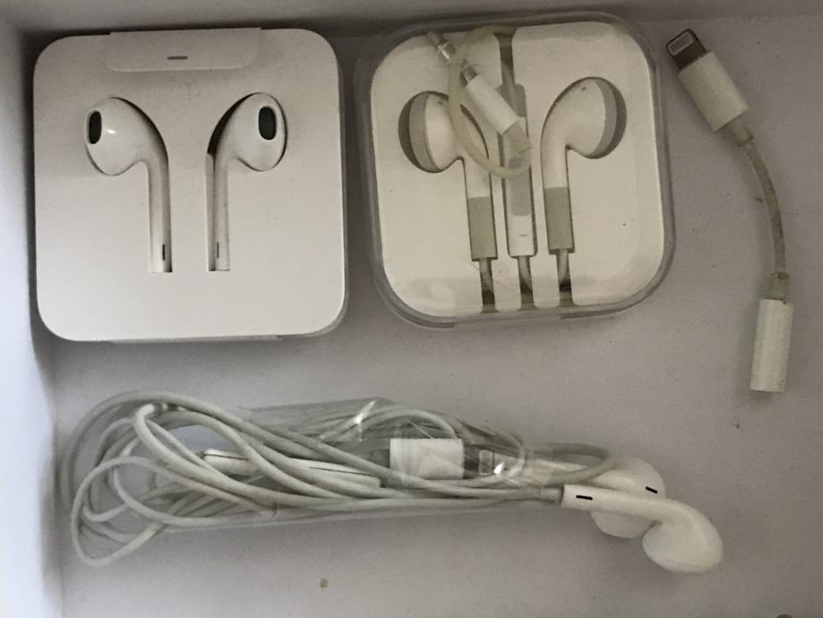 Nove nekorištene original Apple slušalice sa Lightening utorom - odgovara za iPhone SE/7/8/X/Xs/Xr/11/12/13/14. Prema portalu Nabava.net u trgovinama takve slusalice koštaju od 17,99 do 39,68 € (podaci iz ožujka 2024.)