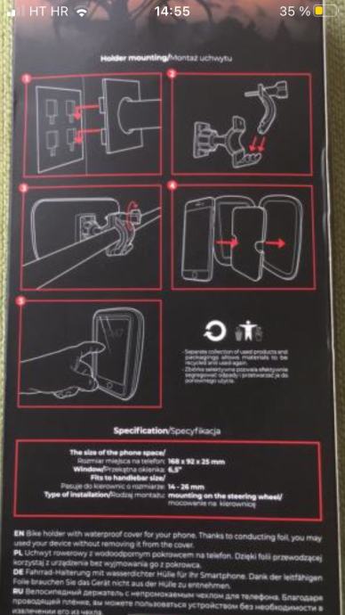 Prodaje se držač mobitela (može i navigacije) za motor ili bicikl.Torbica je vodootporna.