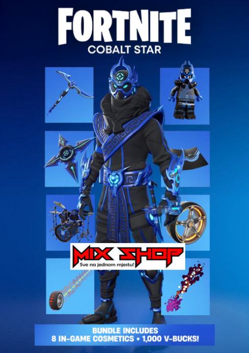 - Paket Fortnite Cobalt Star uključuje 8 kozmetika u igri (procijenjena vrijednost od 5000 V-Bucks)