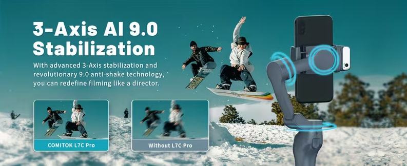 • 3-osni stabilizator gimbal: L7C 3-osni stabilizator gimbal pruža glatke i stabilne snimke, smanjujući podrhtavanje kamere i vibracije tijekom snimanja.