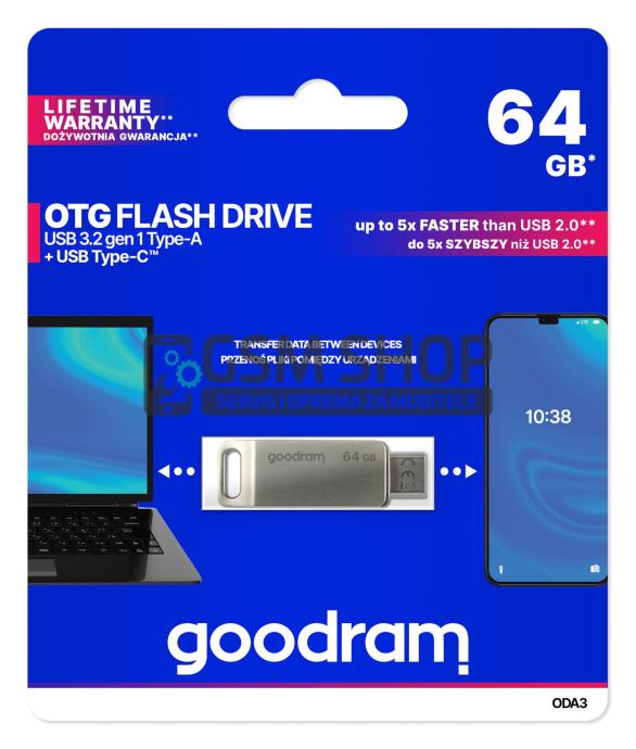 GOODRAM ODA3 OTG Flash drive 3.2 USB + TYPE C Stick 64 GB