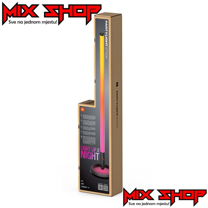**Nezaboravna zabava ne samo da zvuči nevjerojatno – trebala bi i izgledati fantastično. Sada možete kreirati svoje vlastito okruženje s JBL PartyLight Stick-om. Ovo svjetlo se bežično sinkronizira s vašim JBL PartyBox zvučnicima kako bi projiciralo šareno i kinetičko svjetlo za zabavu. Podesite kut da biste centrirali svjetlosni šou gdje želite i pustite da se živopisne boje slažu s energijom vaše zabave tijekom cijele noći, od blagih ambijentalnih ritmova do epskih plesnih ritmova do čistog delirija vrhunske energije vaše zabave. Upravljajte podesivim postavkama pokreta, brzine i intenziteta brzo i jednostavno pomoću aplikacije JBL One ili aplikacije PartyBox. Podignite svoj prostor za zabavu na višu razinu s nenadmašnom kombinacijom JBL PartyBox i JBL PartyLight Stick.**