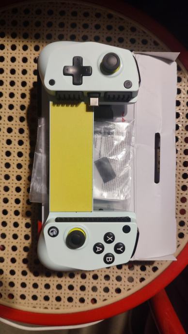 Kontroler za mobitel. Kratko korišten. Svi mobiteli stanu u njega. Povezivanje sa mobitelom žično pa nema nikakve latencije tj.kašnjenja. Usb-c utor za punjenje mobitela preko kontrolera. Za To