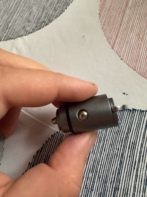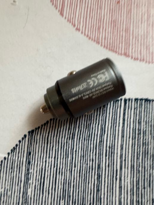 Kratki punjač za mobitel koji radi preko auto utičnice, usb c i usb utor, kada se stavi u utičnicu skroz potone. Cijena 15€.