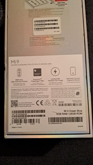 Kutija za Mi9 Ocean Blue 6 GB RAM 128 GB ROM(bez mobitela)