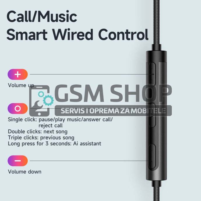 Jednostavna kontrola pomoću tri tipke Ugrađeni upravljač omogućuje vam brzo podešavanje glasnoće, reprodukciju glazbe ili upravljanje pozivima bez posezanja za uređajem.