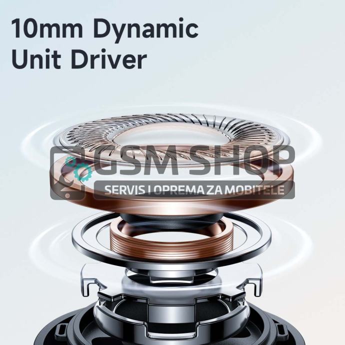10 mm dinamički zvučnici Veliki 10 mm zvučnici omogućuju snažan bas, jasne srednje tonove i izbalansirane visoke frekvencije – za potpuno stereo iskustvo.