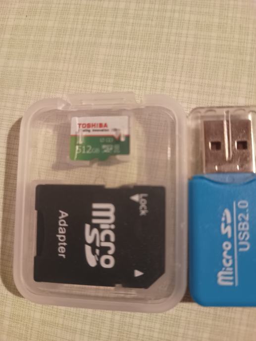 Micro SD memorijske kartice Toshiba od 512GB velikog kapaciteta, U3 klase,sa adapterom za PC i USB stickom, povoljno prodajem.