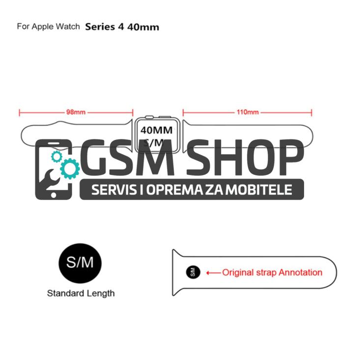 Silikonski remen za satove Apple Watch serije 6 / SE / 5/4 40 mm / serije 3/2/1 38 mm, veličina: S / M