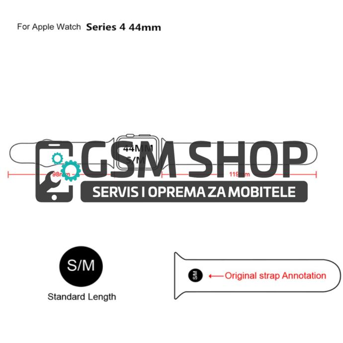 Silikonski remen za satove Apple Watch serije 6 / SE / 5/4 44 mm / serije 3/2/1 42 mm, veličina: S / M